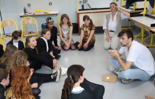 Mardi 25 mars 2025, les classes de 5e ont présenté à leur famille au théâtre des Jacobins une scène ouverte auxquels participaient les élèves de l’option théâtre.